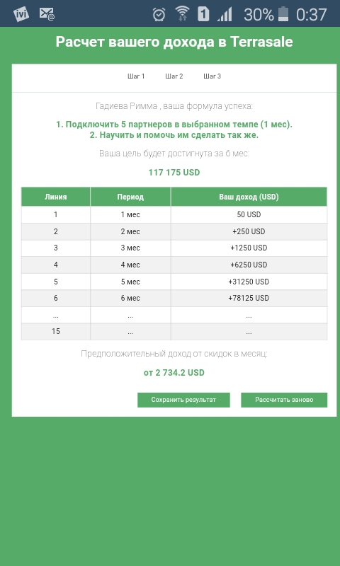 Terrasale предлагает рассчитать предпологаемый доход! И могу заверить, если ваш доход будет в разы меньше, чем в расчетете, это все равно превзойдет все ожидания! Это в разы больше чем вы можно расчитывать получить в других сетевых компаниях или на руководящих должностях в офисах!