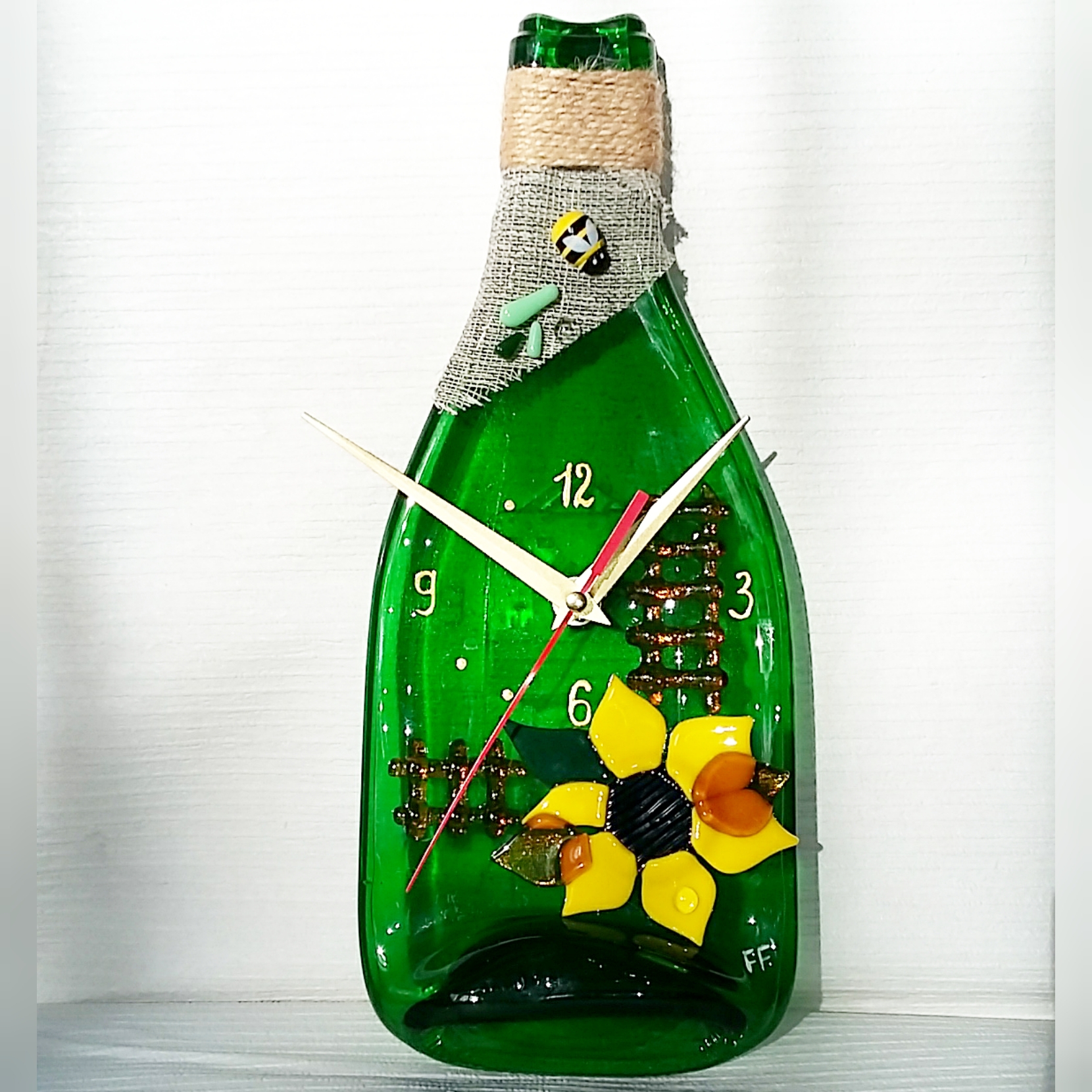 Ручная работа, бутылка, стекло фьюзинг, часовой механизм.